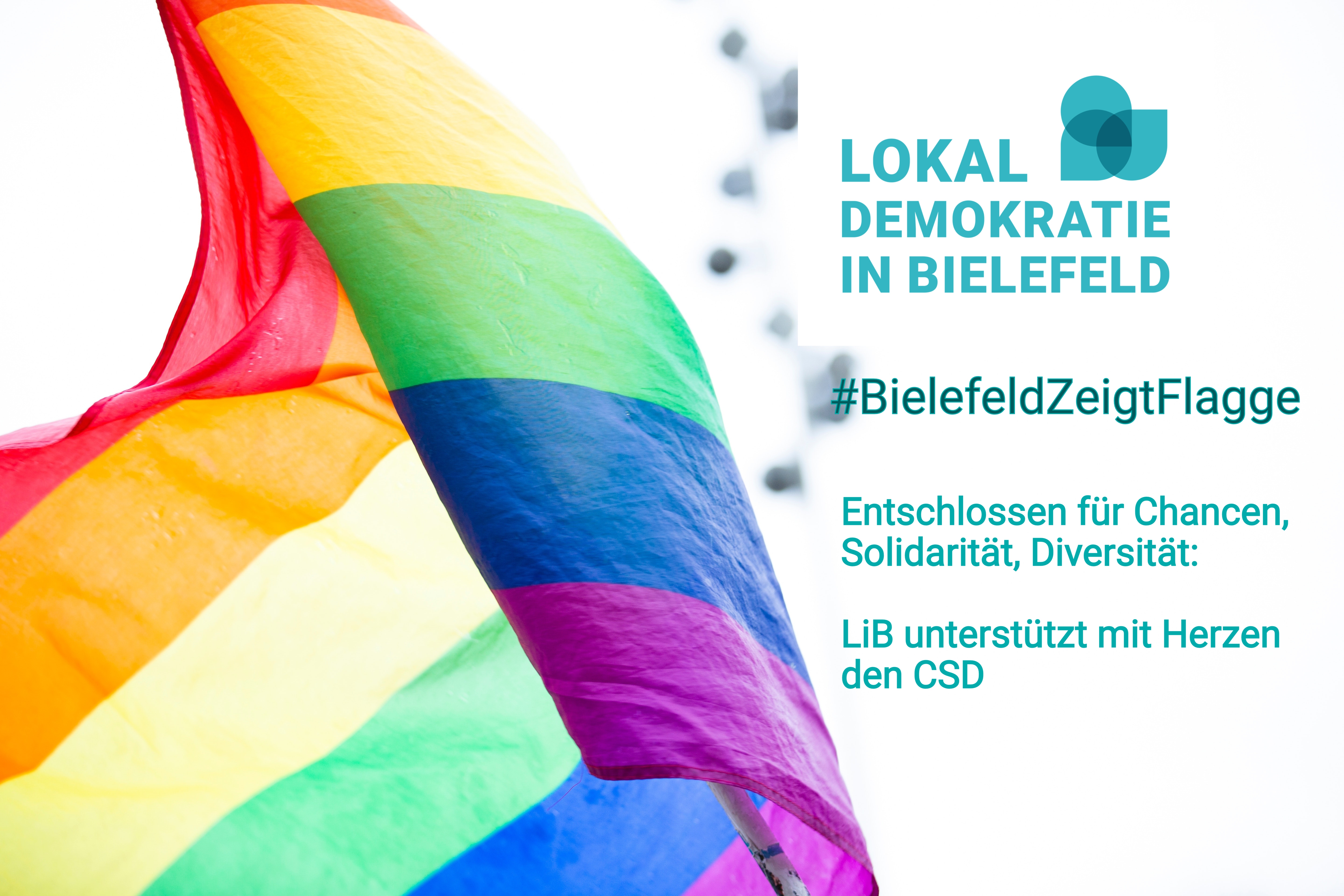 Tobi* Warkentin, Spitzenkandidatur für die Bezirksvertretung Schildesche, Direktkandidatur für den Wahlbezirk Sudbrack sowie selbst Teil der queeren Community kommentiert dazu: „Lokaldemokratie in Bielefeld (LiB) ruft in Solidarität und Unterstützung aller queeren Menschen in Bielefeld deshalb auch die Bielefelder Bürger*innen, die politischen Parteien und Initiativen, soziale und kulturelle Einrichtungen, Behörden und Geschäfte dazu auf, zum Christopher Street Day (CSD) am 13. Juni an ihren Wohnungen, Geschäften und Gebäuden eine Regenbogenbogenflagge anzubringen und klare Kante gegen Diskriminierung von insbesondere LSBTIQ* – Menschen zu zeigen. Wir kandidieren zur Kommunalwahl im September auch mit einigen queeren Menschen. Wir wollen nicht nur Sichtbarkeit herstellen und Solidarität zeigen, sondern wir fordern: Die direkte Gleichberechtigung, Emanzipation, Akzeptanz und Mitbestimmung von LSBTIQ* in Bielefeld.“ Liebe kennt kein Geschlecht und keine Grenzen.