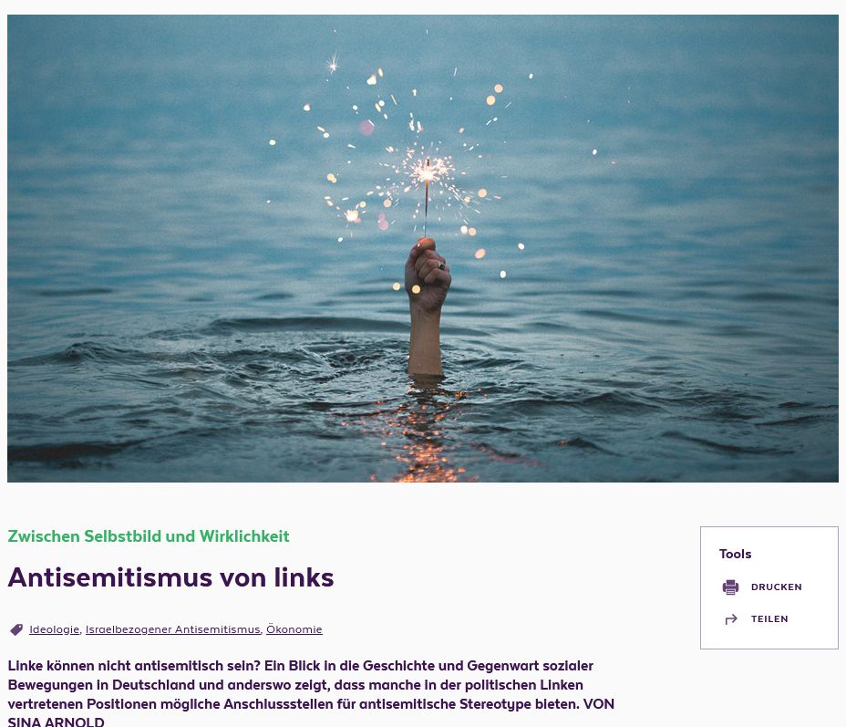 Das als links einzuordnende Millieu, dem ich mich selbst zurechne, hat ebenfalls eine lange Historie des Antisemitismus. Warum eigentlich? Einen guten ersten Überblick findet ihr hier: https://www.anders-denken.info/informieren/antisemitismus-von-links