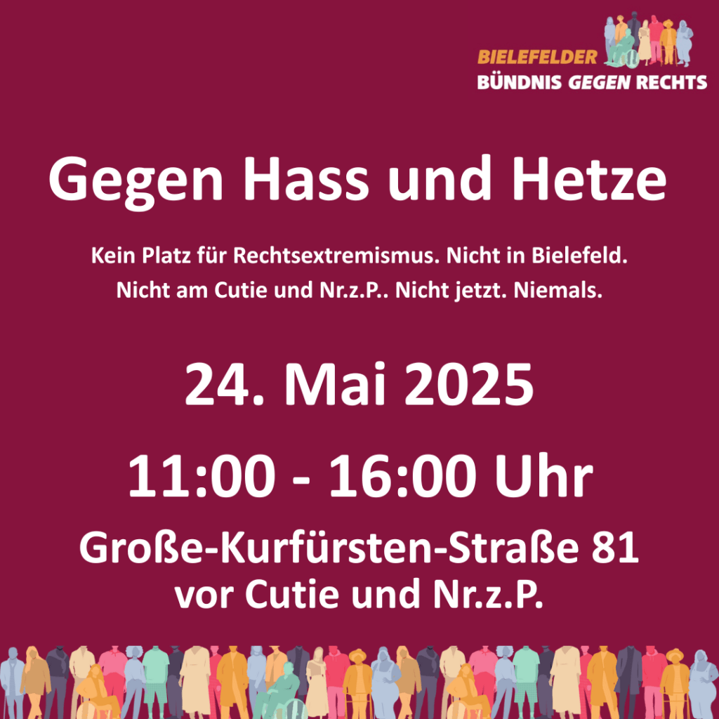 Aber hier ist kein Platz für Rechtsextremismus. Nicht in Bielefeld. Nicht am Cutie. Nicht am Nr.z.Platz. Nicht jetzt. Niemals.