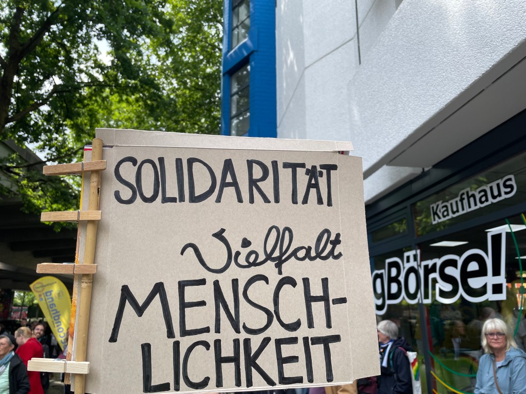 Und wir sagen den Rechten: Ihr seid nicht das „Wir“ dieser Stadt. Das „Wir“ dieser Stadt steht hier. Laut. Bunt. Entschlossen.