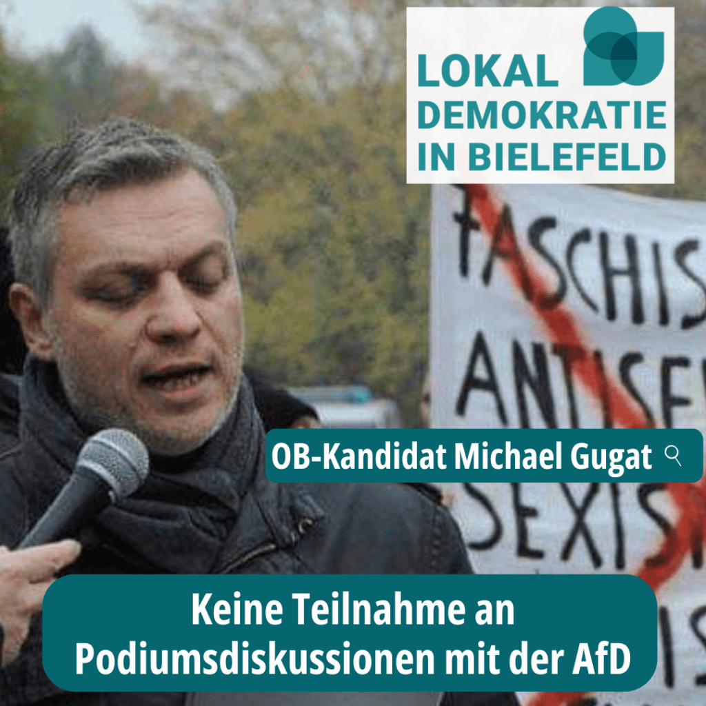 „Im Rahmen der Absage der Podiumsdiskussion des Seniorenrates der Stadt Bielefeld mit den OB-Kandidat*innen gibt es unterschiedliche Betrachtungen. Wir hören oftmals „Die AfD muss in der Debatte gestellt werden!“. Oder: „Dadurch bringen wir sie in eine Opferrolle!“
